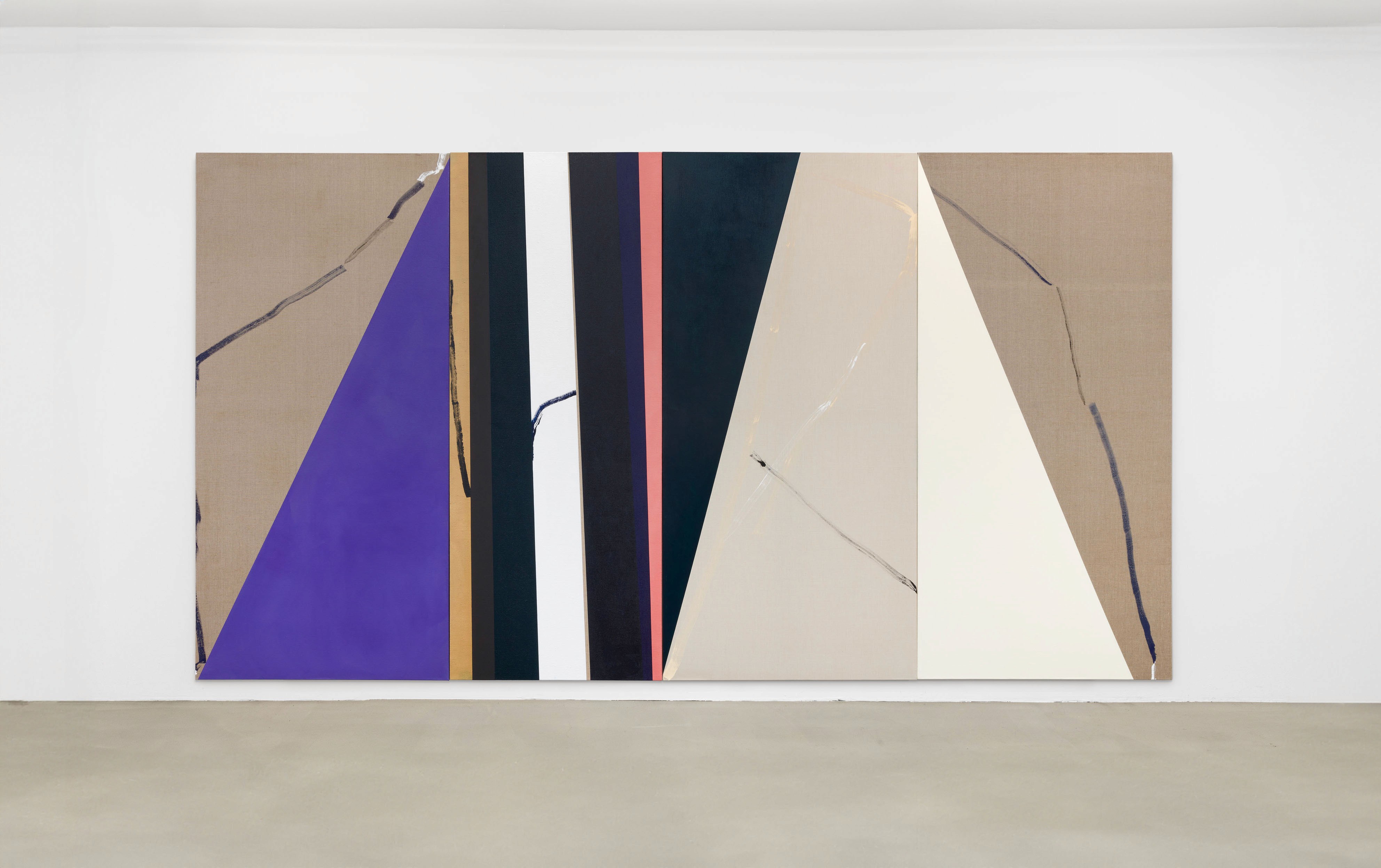 Untitled, distemper on linen, 160 × 520 cm, 2021